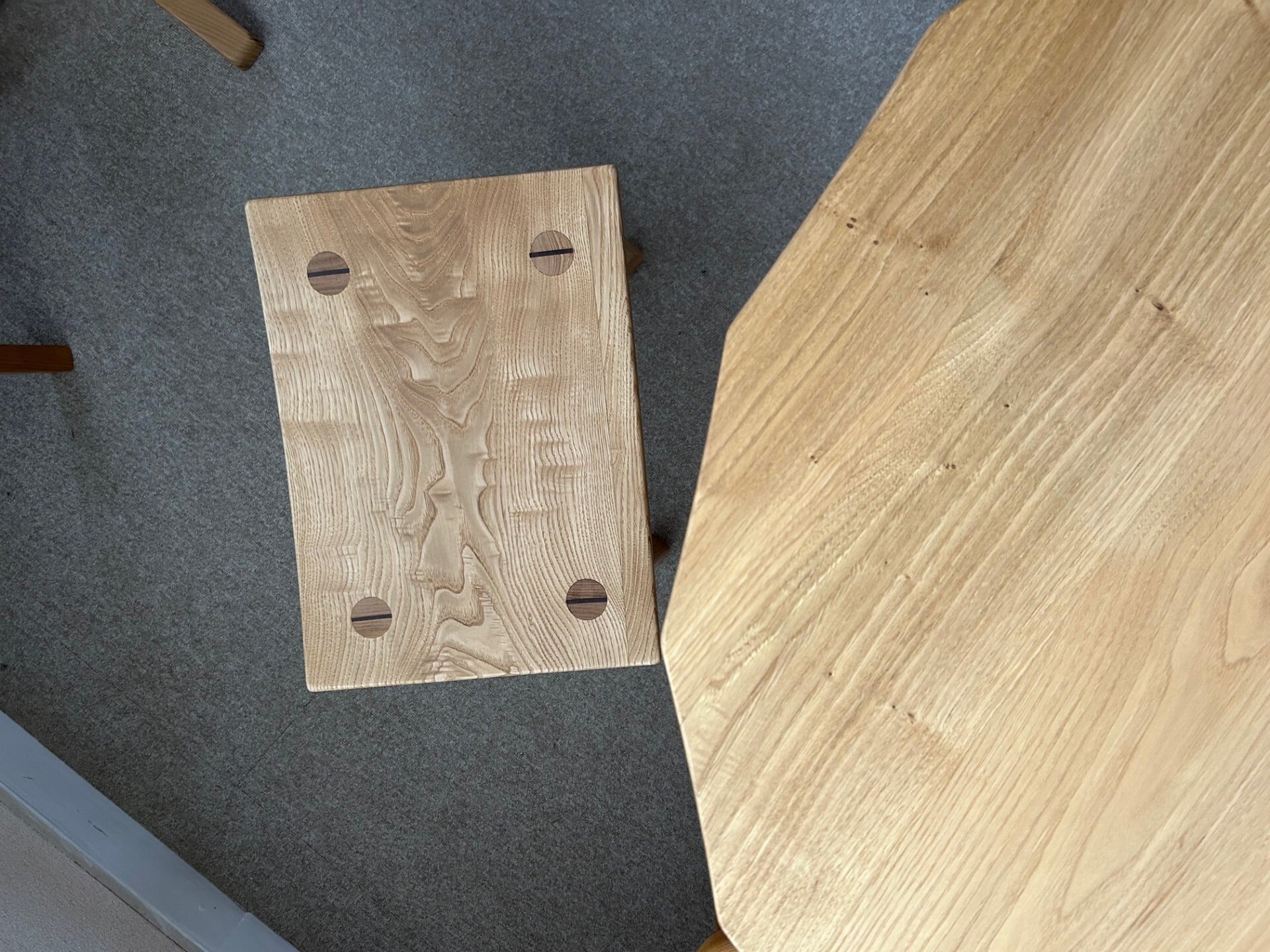 今回の1点の座面は、幅の広い栗材が使われていて、1枚板!?と思うほど。
