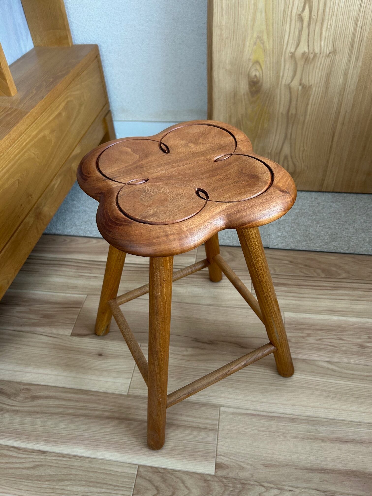 こぶりで可愛いクローバースツール。今ウォールナットの高騰もあり制作を