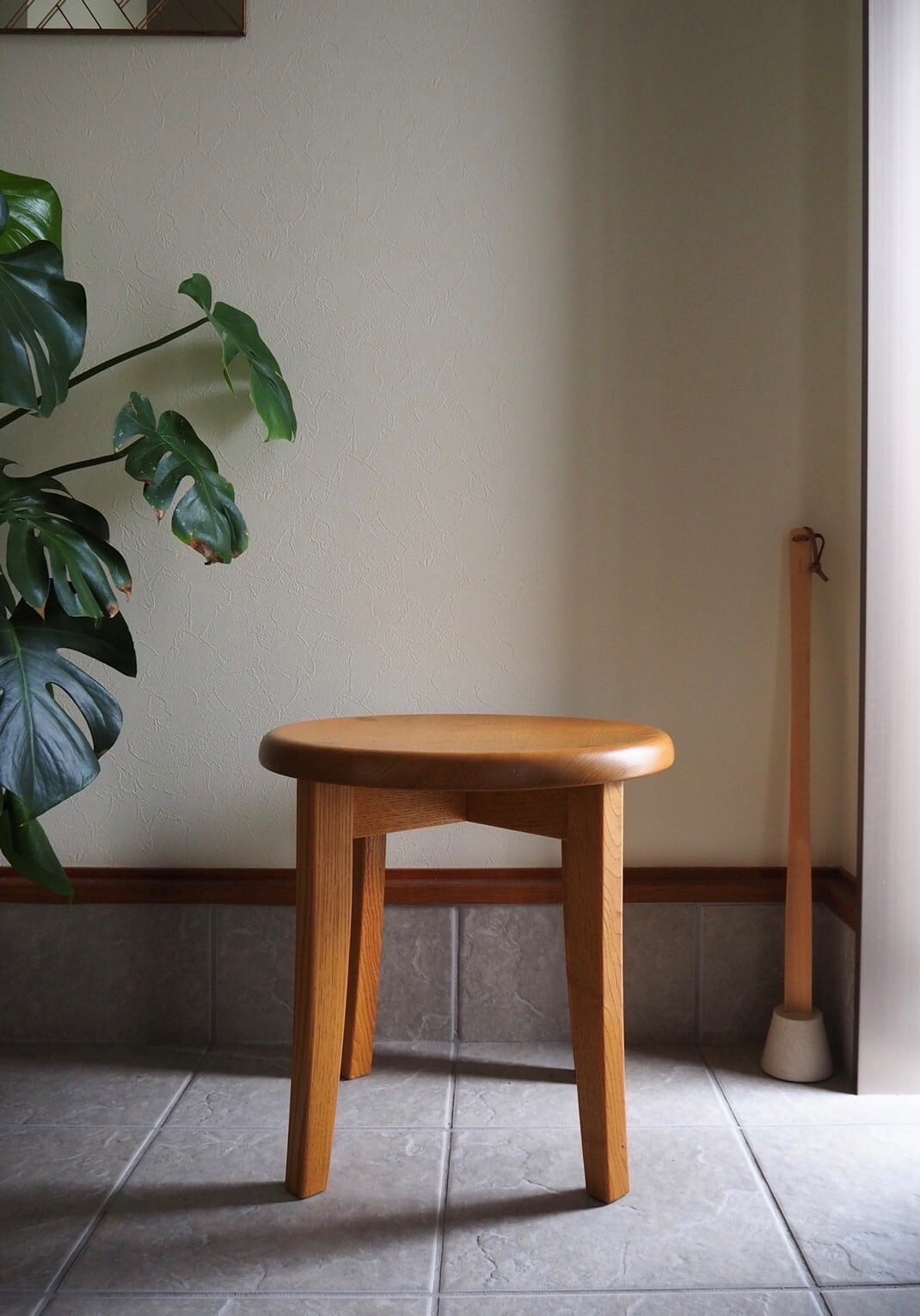 栗の木の愛らしい木目を楽しむには一番の、まんまるな座面でしっかりと安定感のある丸スツールの大きめサイズ。