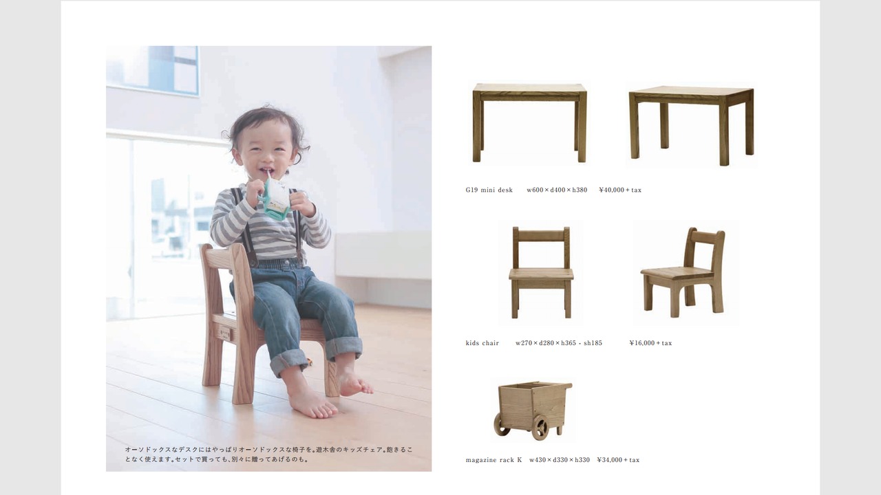 子ども椅子としての役目を終えた後も、ランドセルを置いたり、玄関先のディスプレイなど、色んな場所で子どもと共に時間を刻み、目にするだけで小さかった頃を思い出す、こども椅子。