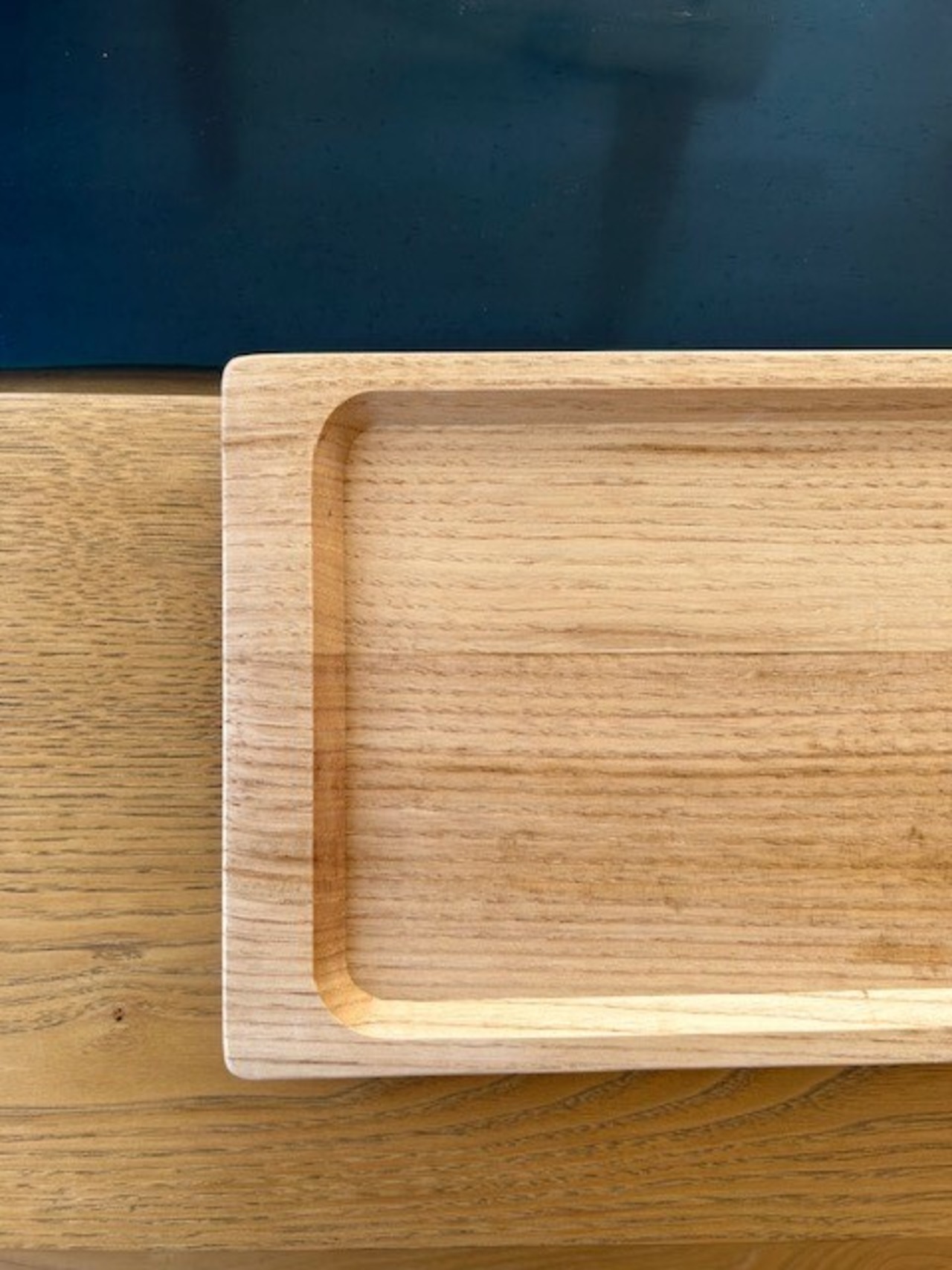 厚みがあり、木のあたたかさがそのまま切り出されている。そんなトレイ。
